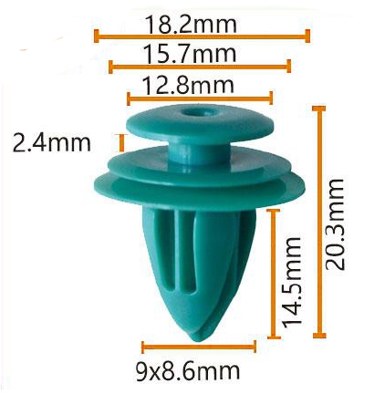 Qeepei Fastener- ը պարունակում է ճշգրիտ չափսեր, որոնք խստորեն փորձարկվել են `ձեր GM մեքենայի հետ կատարյալ տեղավորվելու համար: 20.3 մմ երկարությունը, 9,6 մմ լայնությունը, իսկ անցքի տրամագիծը, 8,6 մմ: Բարձր ամրության կանաչ պլաստիկ նյութը ընտրվում է դրա ամրության, մաշվածության դիմացկունության եւ պոկելու դիմադրությանը եւ ծայրահեղ ջերմաստիճաններին եւ պայմաններին դիմակայելու ունակություն: