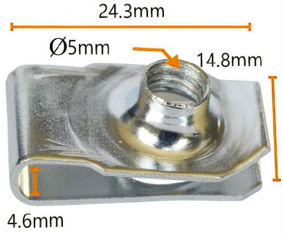 Ամրակազմը պարծենում է ճշգրիտ ընդհանուր չափսերով, որը չափում է 24.3 մմ լայնությամբ եւ 14.8 մմ բարձրությամբ, ապահովելով սահուն տեղավորումը ձեր մեքենայի ամրացման կետերով: Բացի այդ, պատկերի ներքեւում նշված 4.6 մմ երկարությունը կարող է անդրադառնալ հատուկ մասի քննադատական հարթությանը, հետագայում ընդգծել ապրանքի պրոֆեսիոնալիզմը եւ ճշգրտությունը: